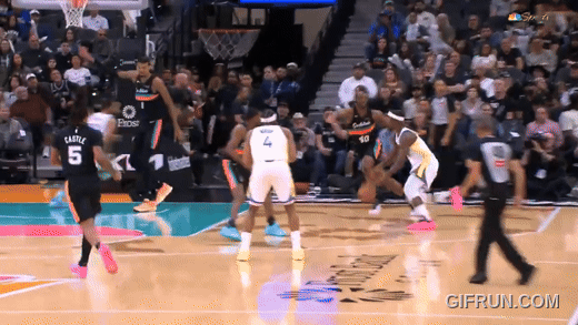 马刺夹击库里,吉米摘球喂霍福德远射——利用库有引力。