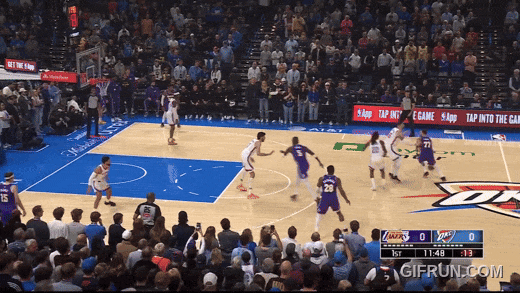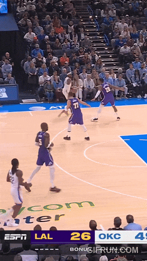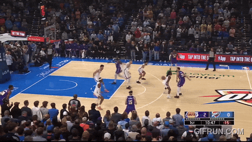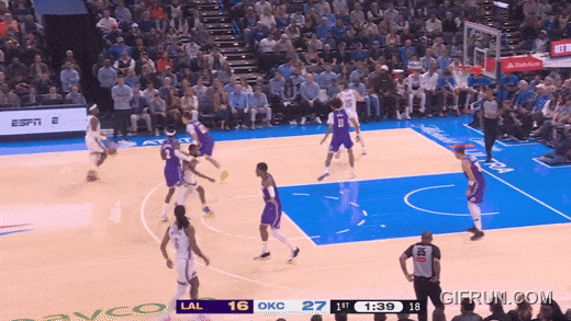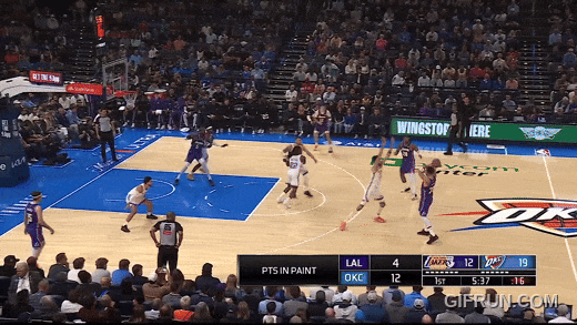 卢卡面对切特射中了换防三分,但雷霆依然锲而不舍,用切特的换防对付卢卡,切割湖人的出球。