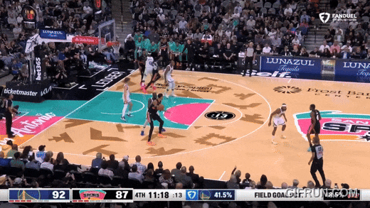 文班到三分线去追库里,被库里直穿篮下造罚球;瓦塞尔绕掩护细节不好,被库里要到三罚球:半节库里三个三分9个罚球,内外开花,马刺防守崩坏: